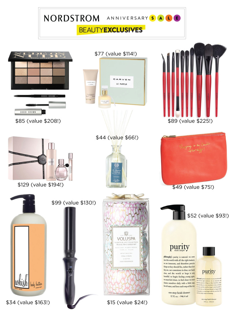 We all love Nordstrom's Anniversary Sale. It's a great time to stock up on current season's styles, nice boots and handbags, as well as high priced coats. But one thing I haven't heard as much about are the BEAUTY EXCLUSIVES! The sales are good, y'all. Just take a look at my faves.